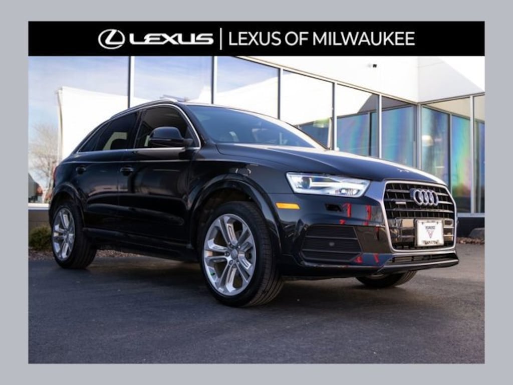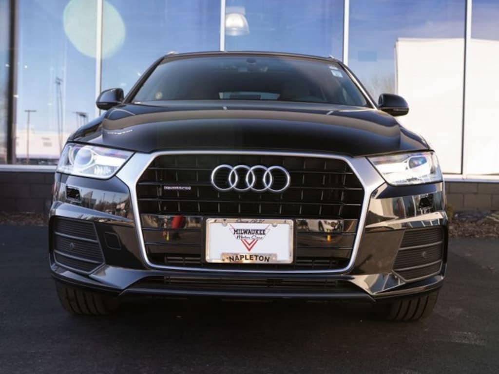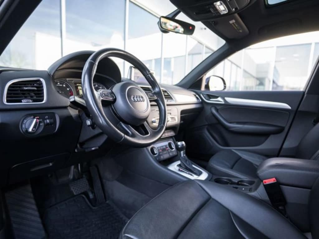 This Q3 is well equipped with Technology Package (Audi Connect w/Online Services, Audi Side Assist, Color Driver Information System w/Trip Computer, and Radio: MMI Navigation Plus), Exterior Parking Camera Rear, Heated Front Seats, Navigation System, Power Moonroof, Power Tailgate, Steering wheel mounted audio controls, 10 Speakers, 4-Wheel Disc Brakes, ABS brakes, Air Conditioning, Alloy wheels, AM/FM radio, Audi Guard Protection Kit, Audi Guard Wheel Lock Kit, Auto-dimming Rear-View mirror, Automatic Temperature Control, Axle Ratio: TBD, Black Cloth Headliner, Black Homelink, Brake assist, Bumpers: body-color, CD player, Compass, Delay-off headlights, Driver door bin, Driver vanity mirror, Dual front impact airbags, Dual front side impact airbags, Electronic Stability Control, First Aid Kit, Four wheel independent suspension, Front anti-roll bar, Front Bucket Seats, Front Dual Zone A/C, Front fog lights, Front reading lights, Fully Automatic Headlights, Heated Front Seats, Heated Rear Seats, High intensity discharge headlights: Xenon plus, Illuminated entry, Leather Seating Surfaces, Leather Shift Knob, Leather steering wheel, Lightning Cable for Audi Music Interface (DISC), Low tire pressure warning, Occupant sensing airbag, Outside temperature display, Overhead airbag, Overhead console, Panic alarm, Passenger door bin, Passenger vanity mirror, Power door mirrors, Power driver seat, Power passenger seat, Power steering, Power windows, Radio data system, Radio: Audi Concert, Rain Sensing Wipers, Rear anti-roll bar, Rear fog lights, Rear reading lights, Rear seat center armrest, Rear window defroster, Rear window wiper, Remote Keyless Entry, Roof rack: rails only, Security system, Speed control, Speed-sensing steering, Split folding rear seat, Spoiler, Tachometer, Telescoping steering wheel, Tilt steering wheel, Traction control, Trip computer, Turn signal indicator mirrors, Variably intermittent wipers, Wheels: 7.0" x 18" 5-Arm Turbine Design, and Wheels: 8.5" x 19" 5-Double-Spoke-Design.