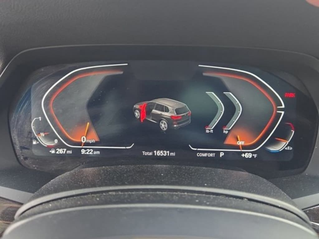 This X5 is well equipped with Climate Comfort Package (4-Zone Automatic Climate Control, Front & Rear Heated Seats, and Heated Front Seats w/Armrests & Steering Wheel), Connected Package Pro, Executive Package (Glass Controls, Head-Up Display, Icon Adaptive LED Headlights w/Laserlight, Panoramic Sky Lounge LED Roof, Rear Manual Side Window Shades, and Remote Engine Start), M Sport Package (Adaptive M Suspension, Aerodynamic Kit, High-Gloss Shadowline Roof Rails, M Steering Wheel, Shadowline Exterior Trim, Wheels: 20" x 9" M Star-Spoke Bi-Color, and Without Lines Designation Outside), M Sport Package (337), Cognac Premium Synthetic, 10 Speakers, 3.39 Axle Ratio, 4-Wheel Disc Brakes, ABS brakes, Air Conditioning, Alloy wheels, AM/FM radio: SiriusXM with 360L, AM/FM Stereo, Auto High-beam Headlights, Auto tilt-away steering wheel, Auto-dimming door mirrors, Auto-dimming Rear-View mirror, Automatic Temperature Control, BMW Assist eCall, BMW TeleServices, Brake assist, Bumpers: body-color, Compass, ConnectedDrive Services, Delay-off headlights, Driver door bin, Driver Lumbar Support Only (DISC), Driver vanity mirror, Dual front impact airbags, Dual front side impact airbags, Electronic Stability Control, Emergency communication system: BMW Assist eCall, Enhanced USB & Bluetooth w/Smartphone Integration, Exterior Parking Camera Rear, Four wheel independent suspension, Front anti-roll bar, Front Bucket Seats, Front Dual Zone A/C, Front reading lights, Fully Automatic Headlights, Garage door transmitter, Genuine wood console insert, Genuine wood dashboard insert, Genuine wood door panel insert, Head restraints memory, Heated Door Mirrors, Heated Front Seats, Heated Front Seats, Heated Rear Seats, Hi-Fi Sound System, Illuminated entry, Knee airbag, Leather Shift Knob, Leather steering wheel, Live Cockpit Pro w/Navigation, Low tire pressure warning, Lumbar Support, Memory seat, Navigation System, Occupant sensing airbag, Outside temperature display, Overhead airbag, Panic alarm, Passenger door bin, Passenger vanity mirror, Power adjustable front head restraints, Power door mirrors, Power driver seat, Power Front Seats, Power Moonroof, Power passenger seat, Power steering, Power windows, Radio data system, Rain Sensing Wipers, Rear anti-roll bar, Rear reading lights, Rear seat center armrest, Rear window defroster, Rear window wiper, Remote Keyless Entry, Security system, Sensafin Upholstery, Speed control, Speed-sensing steering, Speed-Sensitive Wipers, Split folding rear seat, Spoiler, Sport Seats, Sport steering wheel, Steering wheel mounted audio controls, Tachometer, Telescoping steering wheel, Tilt steering wheel, Traction control, Trip computer, Turn signal indicator mirrors, Variably intermittent wipers, and Wheels: 19" x 9" V-Spoke.