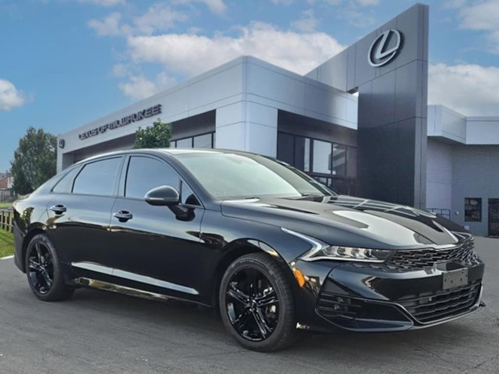 Recent Arrival! CARFAX One-Owner. Ebony Black 2022 Kia K5 4D Sedan GT-Line I4 AWD