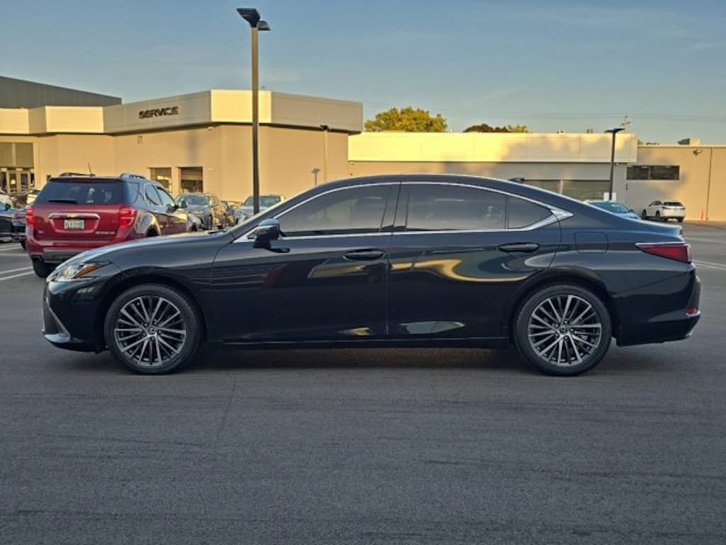 This ES is well equipped with L/Certified Certified, Black w/Black Open Pore w/Perforated NuLuxe Seat Trim, 10 Speakers, 10-Way Power Adjustable Front Seats, 4-Wheel Disc Brakes, ABS brakes, Air Conditioning, Alloy wheels, AM/FM radio: SiriusXM, Auto High-beam Headlights, Auto-dimming door mirrors, Auto-dimming Rear-View mirror, Automatic Temperature Control, Brake assist, Bumpers: body-color, Compass, Delay-off headlights, Driver door bin, Driver vanity mirror, Dual front impact airbags, Dual front side impact airbags, Electronic Stability Control, Emergency communication system, Exterior Parking Camera Rear, Four wheel independent suspension, Front anti-roll bar, Front Bucket Seats, Front Dual Zone A/C, Front reading lights, Fully Automatic Headlights, Garage door transmitter: HomeLink, Heated Door Mirrors, Heated Rear Seats, Illuminated entry, Knee airbag, Leather Shift Knob, Leather steering wheel, Low tire pressure warning, Occupant sensing airbag, Outside temperature display, Overhead airbag, Overhead console, Panic alarm, Passenger door bin, Passenger vanity mirror, Perforated NuLuxe Seat Trim, Power door mirrors, Power driver seat, Power Moonroof, Power passenger seat, Power Rear Sunshade, Power steering, Power Tilt/Telescoping Steering Wheel w/Memory, Power windows, Radio data system, Radio: Lexus Interface w/8" Multimedia Touch Scrn, Rain Sensing Wipers, Rear anti-roll bar, Rear reading lights, Rear seat center armrest, Rear side impact airbag, Rear window defroster, Remote Keyless Entry, Security system, Speed control, Speed-sensing steering, Steering wheel mounted audio controls, Tachometer, Telescoping steering wheel, Tilt steering wheel, Traction control, Trip computer, Turn signal indicator mirrors, Variably intermittent wipers, Wheels: 17" x 7.5J Twin-V-Spoke Alloy, Windshield De-Icer, Wireless Apple CarPlay/Wireless Android Auto, Wireless Charger, and Wood Trim w/Ambient Lighting.