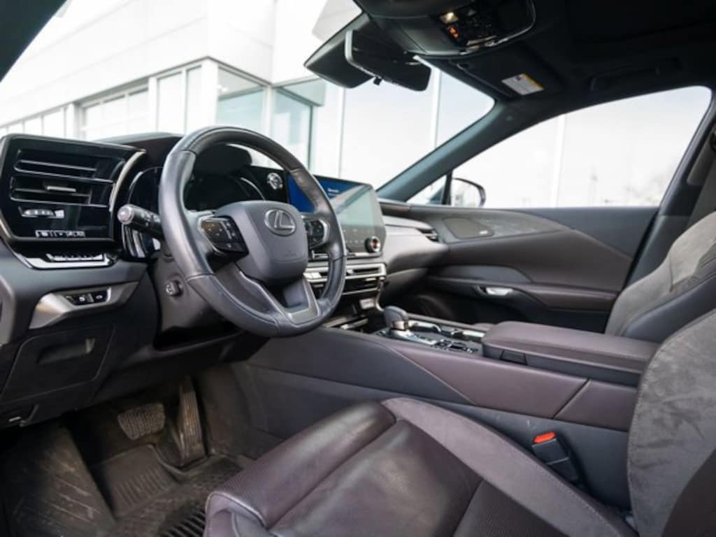 This RX is well equipped with Cold Area Package, Luxury Grade Package, Alloy wheels, Exterior Parking Camera Rear, Heated & Ventilated Front Bucket Seats, Heated Steering Wheel, Power Liftgate, Power Moonroof, Wireless Apple CarPlay/Wireless Android Auto, 10-Way Power Adjustable Driver & Passenger Seat, 12 Speakers, 21" Alloy Wheels, 3.64 Axle Ratio, 4-Wheel Disc Brakes, ABS brakes, Active Cruise Control, Air Conditioning, AM/FM radio: SiriusXM, Anti-whiplash front head restraints, Auto High-beam Headlights, Auto tilt-away steering wheel, Auto-dimming door mirrors, Auto-dimming Rear-View mirror, Automatic Temperature Control, Brake assist, Bumpers: body-color, Compass, Delay-off headlights, Driver door bin, Driver vanity mirror, Dual front impact airbags, Dual front side impact airbags, Electronic Stability Control, Emergency communication system: Safety Connect (10-year trial), Finish Plate Door Inner Garnish, Four wheel independent suspension, Front anti-roll bar, Front Bucket Seats, Front Dual Zone A/C, Front fog lights, Front reading lights, Fully Automatic Headlights, Garage door transmitter: HomeLink, Heads-Up Display, Heated Door Mirrors, Heated Front Seats, Heated Rear Seats, Illuminated entry, Illuminated Entry System, Leather Shift Knob, Leather steering wheel, Low tire pressure warning, Memory seat, Normal Head Up Display, Occupant sensing airbag, Outside temperature display, Overhead airbag, Overhead console, Panic alarm, Parking Support Alert/Brake, Passenger door bin, Passenger vanity mirror, Power door mirrors, Power driver seat, Power passenger seat, Power steering, Power windows, Radio data system, Radio: Lexus Interface w/14" HD Touchscreen Display, Radio: Lexus Interface w/Mark Levinson Audio, Rain Sensing Wipers, Rear air conditioning, Rear anti-roll bar, Rear reading lights, Rear seat center armrest, Rear side impact airbag, Rear window defroster, Rear window wiper, Remote Keyless Entry, Roof rack: rails only, Security system, Semi-Aniline/Synthetic Suede Leather Seat Trim, Speed control, Speed-sensing steering, Split folding rear seat, Spoiler, Standard/Normal Speed Meter, Steering wheel memory, Steering wheel mounted audio controls, Telescoping steering wheel, Tilt steering wheel, Traction control, Trip computer, Turn signal indicator mirrors, Variably intermittent wipers, Ventilated front seats, Wireless Charger, and Wood Steering Wheel w/Paddle & Heater.