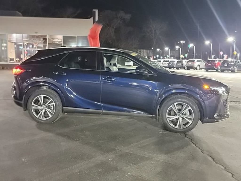 This RX is well equipped with Cold Area Package, Exterior Parking Camera Rear, Heated Front Bucket Seats, Low tire pressure warning, Navigation System, Power Liftgate, Power Tilt & Slide Moonroof/Sunroof, Wireless Apple CarPlay/Wireless Android Auto, 12 Speakers, 19" Alloy Wheels, 3.64 Axle Ratio, 4-Wheel Disc Brakes, ABS brakes, Active Cruise Control, Air Conditioning, Alloy wheels, AM/FM radio: SiriusXM, Anti-whiplash front head restraints, Auto High-beam Headlights, Auto-dimming door mirrors, Auto-dimming Rear-View mirror, Automatic Temperature Control, Brake assist, Bumpers: body-color, Compass, Delay-off headlights, Driver door bin, Driver vanity mirror, Dual front impact airbags, Dual front side impact airbags, Electronic Stability Control, Emergency communication system: Safety Connect (10-year trial), Four wheel independent suspension, Front anti-roll bar, Front Bucket Seats, Front Dual Zone A/C, Front fog lights, Front reading lights, Fully Automatic Headlights, Garage door transmitter: HomeLink, Heated Door Mirrors, Heated Front Seats, Heated Rear Seats, Illuminated entry, Leather Shift Knob, Leather steering wheel, NuLuxe Seat Trim, Occupant sensing airbag, Outside temperature display, Overhead airbag, Overhead console, Panic alarm, Passenger door bin, Passenger vanity mirror, Power door mirrors, Power driver seat, Power passenger seat, Power steering, Power windows, Radio data system, Radio: Lexus Interface w/9.8" HD Touchscreen Display, Rain Sensing Wipers, Rear air conditioning, Rear anti-roll bar, Rear reading lights, Rear seat center armrest, Rear side impact airbag, Rear window defroster, Rear window wiper, Remote Keyless Entry, Security system, Speed control, Speed-sensing steering, Split folding rear seat, Spoiler, Steering wheel mounted audio controls, Telescoping steering wheel, Tilt steering wheel, Traction control, Trip computer, Turn signal indicator mirrors, and Variably intermittent wipers.