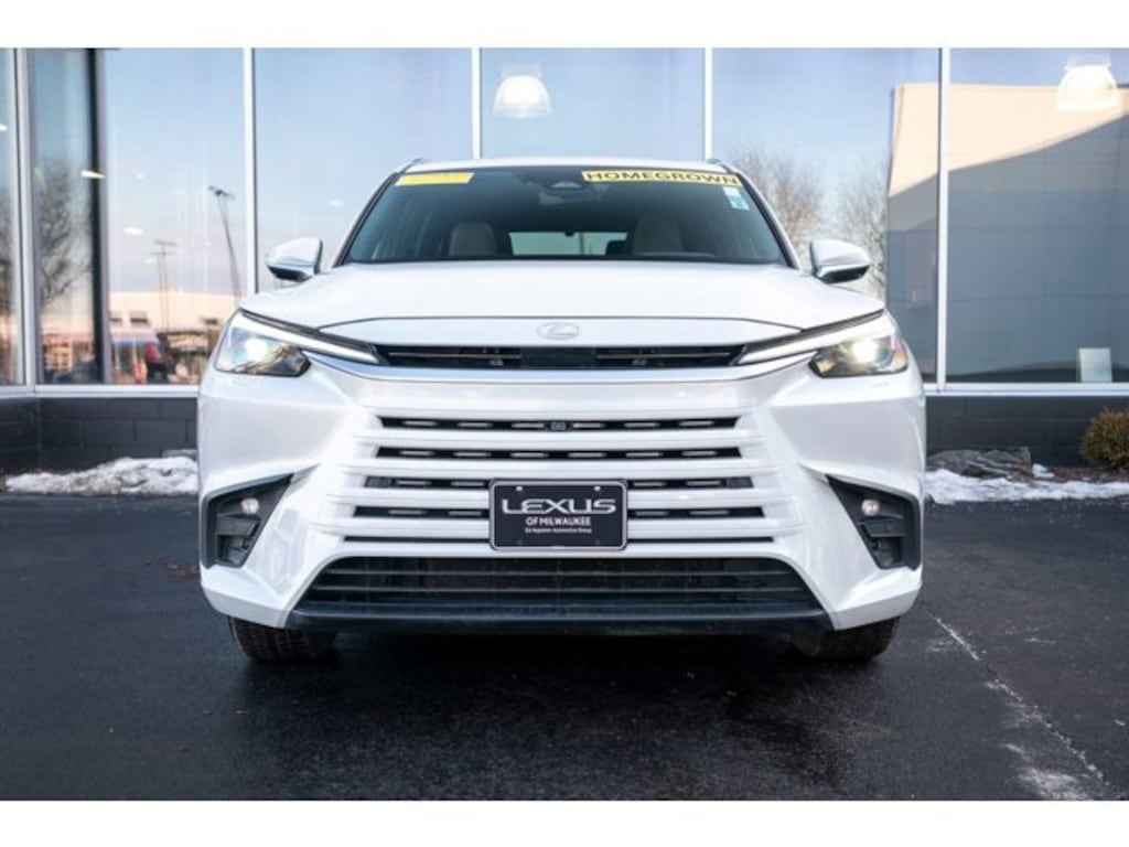 This TX is well equipped with Cold Weather Package (Wiper & Window Deicer), Convenience Package (Lane Keeping System, Pre-Collision System, and Rear Side Monitor), Technology Package (Head-Up Display, Digital Inner Mirror, Intelligent Parking Assist, Peripheral Monitor Camera, and Standard Normal Speed Meter), Captains Chair Package (Front & Rear Seat Air Conditioner and Rear Captain Seats), Exterior Parking Camera Rear, Heated & Air Conditioned Front Seats, Heated Steering Wheel, Navigation System, Power Liftgate, Power Moonroof, 12 Speakers, 20" Wheels, 3rd row seats: split-bench, 4-Wheel Disc Brakes, ABS brakes, Air Conditioning, Alloy wheels, AM/FM radio, Auto High-beam Headlights, Auto tilt-away steering wheel, Auto-dimming door mirrors, Auto-dimming Rear-View mirror, Automatic Temperature Control, Brake assist, Bumpers: body-color, Delay-off headlights, Driver door bin, Driver vanity mirror, Dual front impact airbags, Dual front side impact airbags, Electronic Stability Control, Emergency communication system: Safety Connect (10-year trial), Four wheel independent suspension, Front anti-roll bar, Front Bucket Seats, Front Dual Zone A/C, Front fog lights, Front reading lights, Fully Automatic Headlights, Garage door transmitter: HomeLink, Heated Door Mirrors, Heated Front Seats, Heated Rear Seats, Heated rear seats, Illuminated entry, Knee airbag, Leather Shift Knob, Leather steering wheel, Low tire pressure warning, Memory seat, Navigation system: Drive Connect Cloud Navigation (subscription required), Occupant sensing airbag, Outside temperature display, Overhead airbag, Panic alarm, Passenger door bin, Passenger vanity mirror, Power door mirrors, Power driver seat, Power passenger seat, Power steering, Power windows, Radio data system, Radio: Lexus Interface, Rain Sensing Wipers, Rear air conditioning, Rear anti-roll bar, Rear reading lights, Rear seat center armrest, Rear window defroster, Rear window wiper, Reclining 3rd row seat, Remote Keyless Entry, Security system, Semi-Aniline Seat Trim, Speed control, Speed-sensing steering, Split folding rear seat, Spoiler, Steering wheel memory, Steering wheel mounted audio controls, Tachometer, TBD Axle Ratio, Telescoping steering wheel, Tilt steering wheel, Traction control, Trip computer, Turn signal indicator mirrors, Variably intermittent wipers, Ventilated front seats, and Wireless Apple CarPlay/Wireless Android Auto.