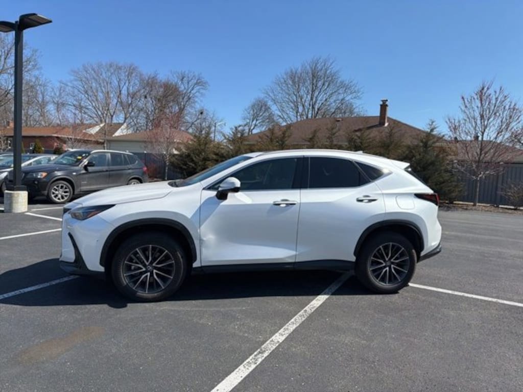 This NX is well equipped with Cold Area Package (Heated Leather-Trimmed Steering Wheel and Windshield Wiper De-Icer), Exterior Parking Camera Rear, Heated Front Bucket Seats, Navigation System, Power Liftgate, Power Tilt & Slide Moonroof, Wireless Apple CarPlay/Wireless Android Auto, Wireless Phone Charger, 10 Speakers, 4-Wheel Disc Brakes, ABS brakes, Air Conditioning, Alloy wheels, AM/FM radio: SiriusXM, Auto High-beam Headlights, Auto-dimming door mirrors, Auto-dimming Rear-View mirror, Automatic Temperature Control, Brake assist, Bumpers: body-color, Delay-off headlights, Driver door bin, Driver vanity mirror, Dual front impact airbags, Dual front side impact airbags, Electronic Stability Control, Emergency communication system: Safety Connect (up to 10-year trial subscription included), Four wheel independent suspension, Front anti-roll bar, Front Bucket Seats, Front Dual Zone A/C, Front fog lights, Front reading lights, Fully Automatic Headlights, Garage door transmitter: HomeLink, Heated Door Mirrors, Heated Front Seats, Illuminated entry, Knee airbag, Leather Shift Knob, Leather steering wheel, Low tire pressure warning, Navigation system: Drive Connect Cloud Navigation (subscription required), NuLuxe Seat Trim, Occupant sensing airbag, Outside temperature display, Overhead airbag, Overhead console, Panic alarm, Passenger door bin, Passenger vanity mirror, Power door mirrors, Power driver seat, Power passenger seat, Power steering, Power windows, Radio data system, Radio: 10-Speaker Lexus Premium Sound, Rain Sensing Wipers, Rear anti-roll bar, Rear reading lights, Rear seat center armrest, Rear window defroster, Rear window wiper, Remote Keyless Entry, Security system, Speed control, Speed-sensing steering, Speed-Sensitive Wipers, Split folding rear seat, Spoiler, Steering wheel mounted audio controls, Tachometer, Telescoping steering wheel, Tilt steering wheel, Traction control, Trip computer, Turn signal indicator mirrors, Variably intermittent wipers, and Wheels: 18" Alloy w/Dark Gray Met & Machined Finish.