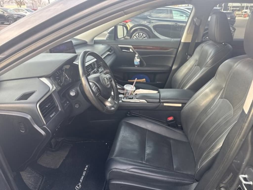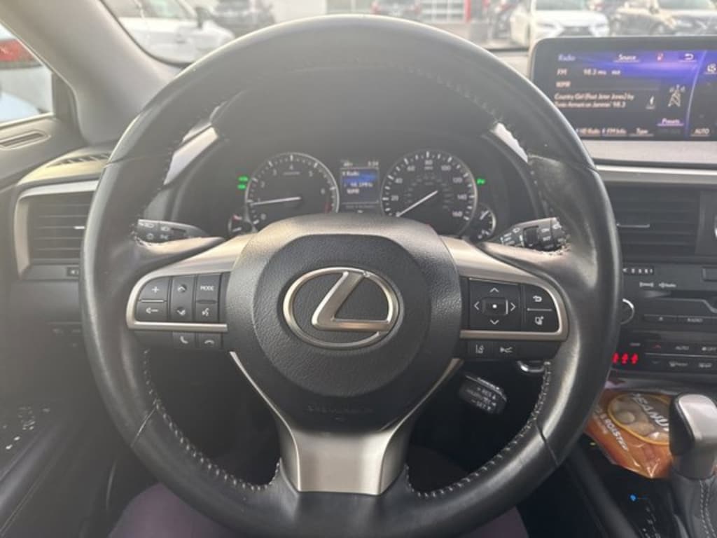 This RX is well equipped with 12.3" Navigation System (Lexus Enform App Suite, Lexus Enform Destinations, and Single-Disc DVD Changer), Premium Package (Aluminum Roof Rails, Driver Seat/Steering/Mirror Memory - 3 Settings, Leather Seat Trim, and Rear Armrest Storage Compartment), AWD, Black w/Leather Seat Trim, Automatic Temperature Control, Fully Automatic Headlights, Heated & Ventilated Front Seats, Heated Door Mirrors, Heated Steering Wheel, Rain Sensing Wipers, Tow Hitch w/Ball Mount, 12 Speakers, 2.277 Axle Ratio, 4-Wheel Disc Brakes, ABS brakes, Air Conditioning, Alloy wheels, AM/FM radio: SiriusXM, Anti-whiplash front head restraints, Auto High-beam Headlights, Auto-dimming Rear-View mirror, Backup Monitor, Bumpers: body-color, CD player, Compass, Delay-off headlights, Driver door bin, Driver vanity mirror, Dual front impact airbags, Dual front side impact airbags, Electronic Stability Control, Emergency communication system: Safety Connect, Exterior Parking Camera Rear, Four wheel independent suspension, Front anti-roll bar, Front Bucket Seats, Front Dual Zone A/C, Front fog lights, Front reading lights, Garage door transmitter: HomeLink, Heated Leather Steering Wheel, Heated Rear Seats, Illuminated entry, Knee airbag, Leather Shift Knob, Leather steering wheel, Low tire pressure warning, Occupant sensing airbag, Outside temperature display, Overhead airbag, Overhead console, Panic alarm, Passenger door bin, Passenger vanity mirror, Power door mirrors, Power driver seat, Power Liftgate, Power passenger seat, Power steering, Power windows, Radio data system, Radio: AM/FM/CD Lexus Display Audio, Rear anti-roll bar, Rear reading lights, Rear seat center armrest, Rear side impact airbag, Rear window defroster, Rear window wiper, Remote Keyless Entry, Security system, Speed control, Speed-sensing steering, Split folding rear seat, Spoiler, Steering wheel mounted audio controls, Tachometer, Telescoping steering wheel, Tilt steering wheel, Traction control, Trip computer, Turn signal indicator mirrors, and Variably intermittent wipers.