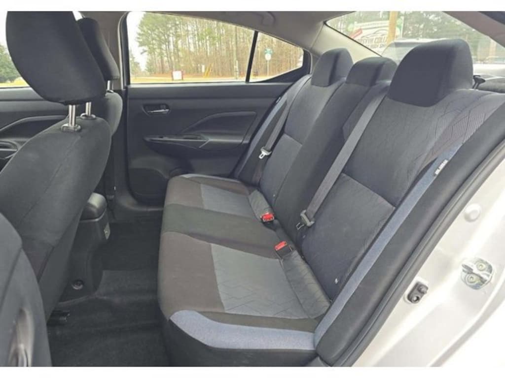 This Versa is well equipped with Apple CarPlay & Android Auto, Illuminated entry, Power windows, Rear Parking Sensors, Remote Keyless Entry, Steering wheel mounted audio controls, 16" Aluminum Alloy Wheels, 4 Speakers, ABS brakes, Air Conditioning, Alloy wheels, Auto High-beam Headlights, Blind Spot Warning, Brake assist, Bumpers: body-color, Carpeted Floor Mats & Trunk Mat (5-Piece Set), Delay-off headlights, Driver door bin, Driver vanity mirror, Dual front impact airbags, Dual front side impact airbags, Electronic Stability Control, Front anti-roll bar, Front Bucket Seats, Front reading lights, Front wheel independent suspension, Fully Automatic Headlights, Heated Door Mirrors, Heated Rear Seats, Knee airbag, Low tire pressure warning, Occupant sensing airbag, Outside temperature display, Overhead airbag, Panic alarm, Passenger door bin, Passenger vanity mirror, Power door mirrors, Power steering, Radio data system, Radio: AM/FM Audio System, Rear side impact airbag, Rear window defroster, Speed control, Split folding rear seat, Tachometer, Telescoping steering wheel, Tilt steering wheel, Traction control, Trip computer, Upgraded Cloth Seat Trim, and Variably intermittent wipers.