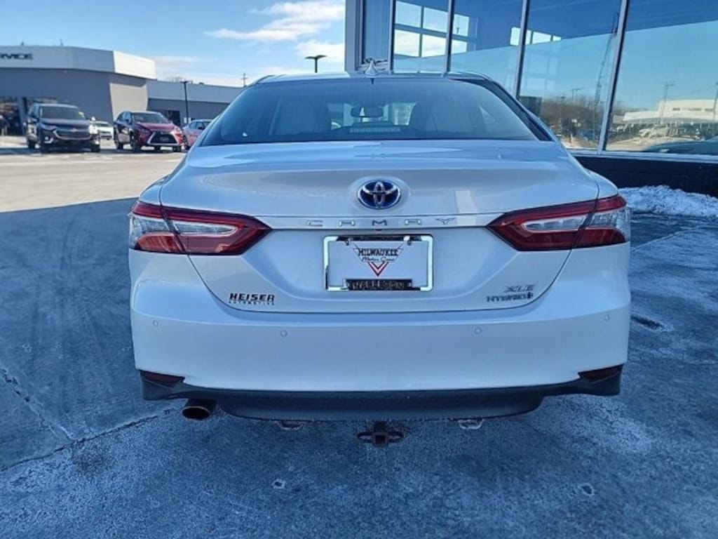 This Camry Hybrid is well equipped with Audio Package (Radio: Entune 3.0 Audio Plus), Driver Assist Package, Sunroof Package, Exterior Parking Camera Rear, Heated Front Seats, Illuminated entry, Remote Keyless Entry, Steering wheel mounted audio controls, 4-Wheel Disc Brakes, 6 Speakers, ABS brakes, Active Cruise Control, Air Conditioning, Alloy wheels, AM/FM radio, Auto High-beam Headlights, Auto-dimming Rear-View mirror, Automatic Temperature Control, Brake assist, Bumpers: body-color, Chrome wheels, Compass, Delay-off headlights, Driver door bin, Driver vanity mirror, Dual front impact airbags, Dual front side impact airbags, Electronic Stability Control, Four wheel independent suspension, Front anti-roll bar, Front Bucket Seats, Front Dual Zone A/C, Front reading lights, Fully Automatic Headlights, Garage door transmitter: HomeLink, Heads-Up Display, Heated Door Mirrors, Knee airbag, Leather Shift Knob, Low tire pressure warning, Multi-Stage Heated Front Bucket Seats, Occupant sensing airbag, Outside temperature display, Overhead airbag, Overhead console, Panic alarm, Passenger door bin, Passenger vanity mirror, Power door mirrors, Power driver seat, Power passenger seat, Power steering, Power windows, Quilted Perforated Leather Seat Trim, Radio data system, Radio: Entune 3.0 Audio, Rear anti-roll bar, Rear reading lights, Rear seat center armrest, Rear side impact airbag, Rear window defroster, Security system, Speed control, Speed-sensing steering, Split folding rear seat, Telescoping steering wheel, Tilt steering wheel, Traction control, Trip computer, Turn signal indicator mirrors, Variably intermittent wipers, and Wheels: 8.0J x 18" Chrome Machined-Finish Alloy.