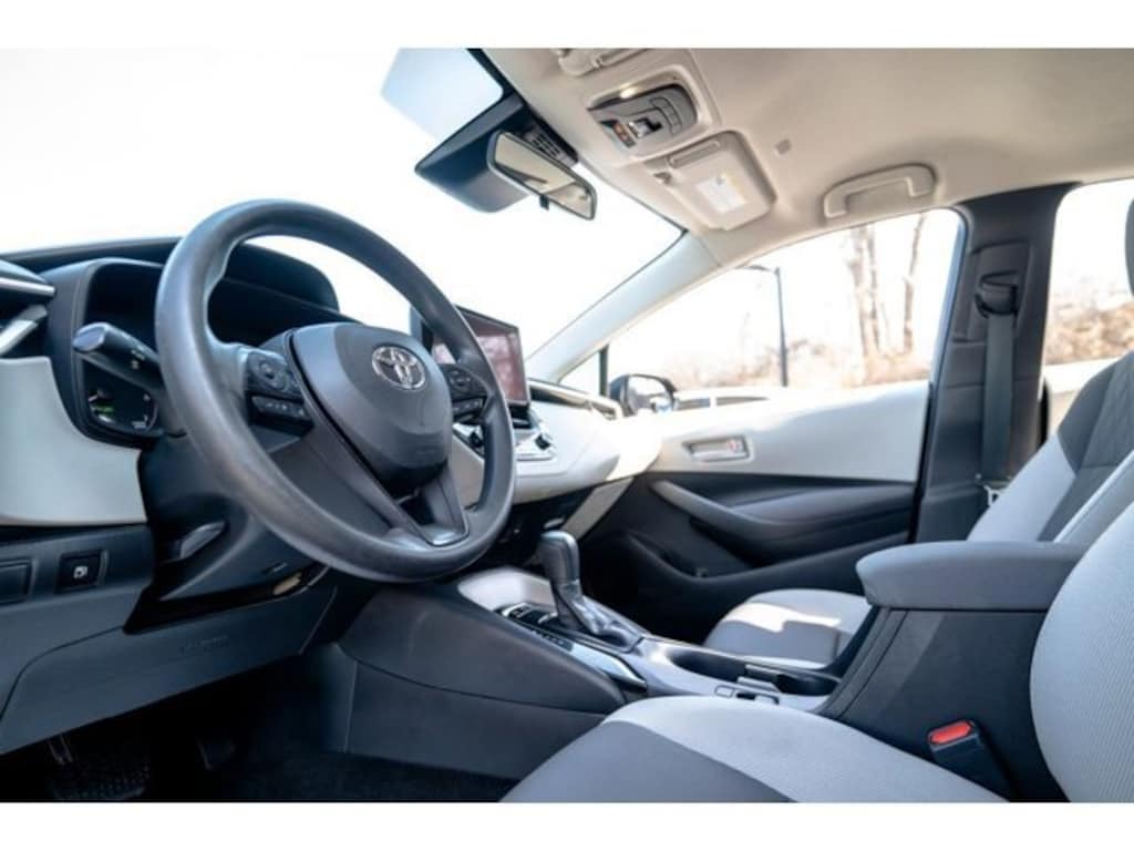 This Corolla Hybrid is well equipped with Exterior Parking Camera Rear, Illuminated entry, Remote Keyless Entry, 4-Wheel Disc Brakes, 6 Speakers, ABS brakes, Active Cruise Control, Air Conditioning, AM/FM radio: SiriusXM, Auto High-beam Headlights, Automatic Temperature Control, Brake assist, Bumpers: body-color, Delay-off headlights, Driver door bin, Driver vanity mirror, Dual front impact airbags, Dual front side impact airbags, Electronic Stability Control, Emergency communication system: Safety Connect (up to 10-year trial subscription), Four wheel independent suspension, Front anti-roll bar, Front Bucket Seats, Front reading lights, Fully Automatic Headlights, Knee airbag, Low tire pressure warning, Occupant sensing airbag, Outside temperature display, Overhead airbag, Panic alarm, Passenger door bin, Passenger vanity mirror, Power door mirrors, Power steering, Power windows, Premium Fabric Seat Trim, Radio data system, Radio: 8" Toyota Audio Multimedia, Rear anti-roll bar, Rear seat center armrest, Rear side impact airbag, Rear window defroster, Speed control, Split folding rear seat, Steering wheel mounted audio controls, Tachometer, Telescoping steering wheel, Tilt steering wheel, Traction control, Trip computer, Variably intermittent wipers, and Wheels: 16" Wide Vent Steel.