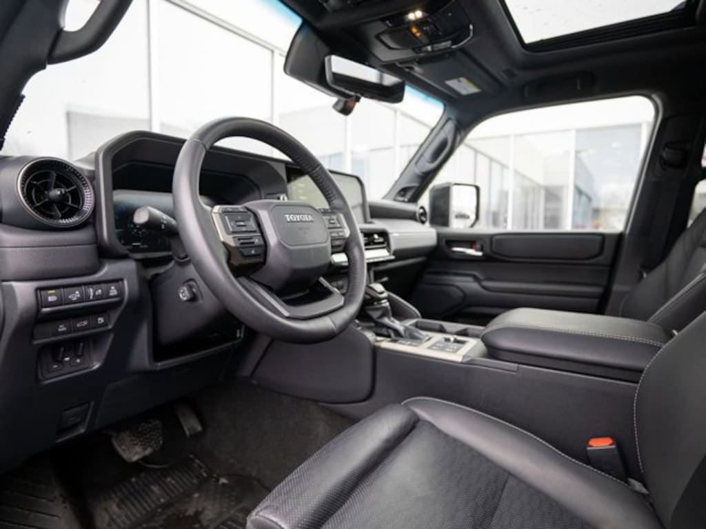 This Land Cruiser is well equipped with Apple CarPlay & Android Auto, Exterior Parking Camera Rear, Heated & Ventilated Front Seats, Low tire pressure warning, Navigation System, Power Liftgate, Power Tilt/Slide Moonroof w/Power Sunshade, 10 Speakers, 4-Wheel Disc Brakes, ABS brakes, Active Cruise Control, Air Conditioning, Alloy wheels, AM/FM radio: SiriusXM, Auto High-beam Headlights, Auto-dimming Rear-View mirror, Automatic Temperature Control, Brake assist, Compass, Delay-off headlights, Driver door bin, Driver vanity mirror, Dual front impact airbags, Dual front side impact airbags, Electronic Stability Control, Emergency communication system: Safety Connect (up to 10-year trial subscription), Front anti-roll bar, Front Bucket Seats, Front Dual Zone A/C, Front fog lights, Front reading lights, Front wheel independent suspension, Fully Automatic Headlights, Garage door transmitter: HomeLink, Heated Door Mirrors, Heated Front Seats, Heated Rear Seats, Heated Steering Wheel, Illuminated entry, Knee airbag, Leather Shift Knob, Leather steering wheel, Navigation system: Drive Connect Cloud Navigation (1-year trial subscription), Occupant sensing airbag, Outside temperature display, Overhead airbag, Overhead console, Panic alarm, Passenger door bin, Passenger vanity mirror, Power door mirrors, Power driver seat, Power steering, Power windows, Radio data system, Radio: Toyota Audio Multimedia System, Rain Sensing Wipers, Rear air conditioning, Rear anti-roll bar, Rear reading lights, Rear seat center armrest, Rear window defroster, Rear window wiper, Remote Keyless Entry, Security system, SofTex Synthetic Leather Seat Trim, Speed control, Speed-sensing steering, Split folding rear seat, Spoiler, Steering wheel mounted audio controls, Telescoping steering wheel, Tilt steering wheel, Traction control, Trip computer, Turn signal indicator mirrors, Variably intermittent wipers, Ventilated front seats, and Wheels: 18" x 7.5J Matte Gray Alloy.