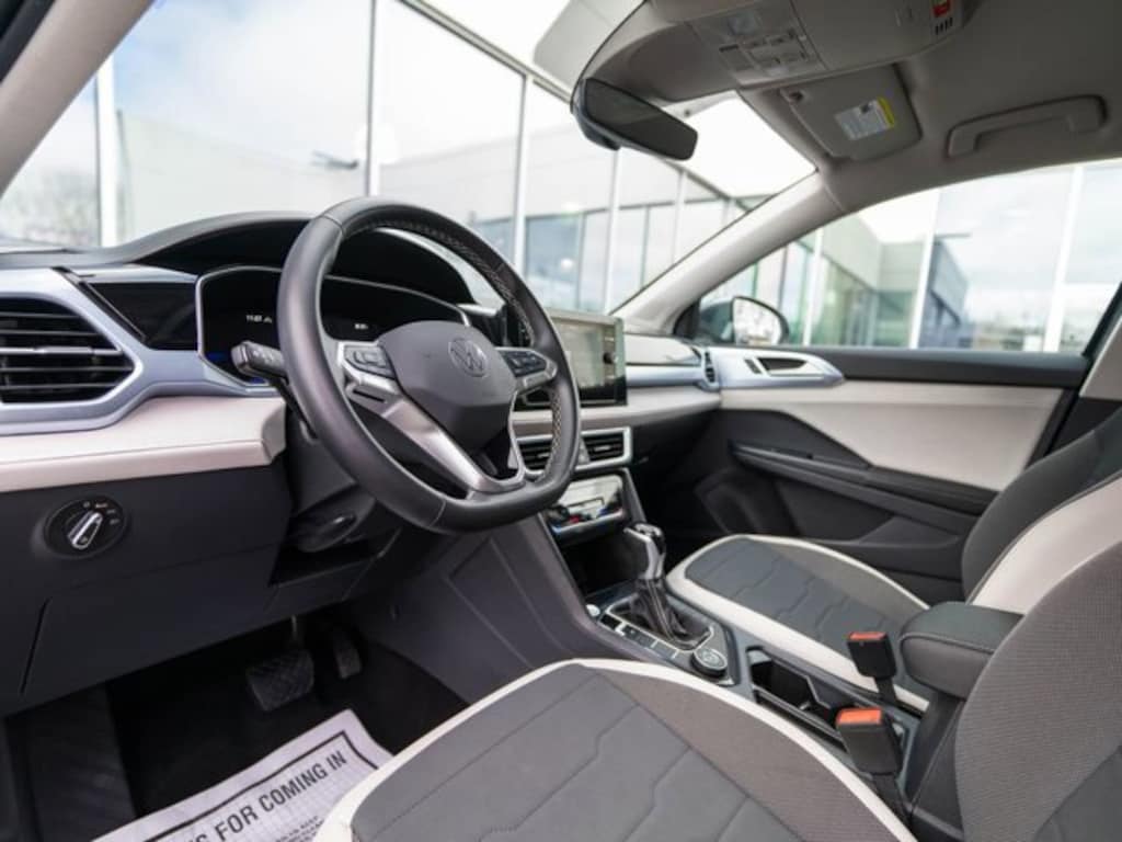 This Taos is well equipped with Exterior Parking Camera Rear, Heated Front Bucket Seats, Heated Steering Wheel, Rain Sensing Wipers, Remote Keyless Entry, Steering wheel mounted audio controls, 4-Wheel Disc Brakes, 6 Speakers, ABS brakes, Active Blind Spot Monitor, Air Conditioning, Alloy wheels, AM/FM radio: SiriusXM with 360L, Auto High-beam Headlights, Automatic Temperature Control, Brake assist, Bumpers: body-color, CloudTex & Cloth Seating Surfaces, Compass, Delay-off headlights, Driver door bin, Driver vanity mirror, Dual front impact airbags, Dual front side impact airbags, Electronic Stability Control, Emergency communication system: VW Car-Net Safe & Secure 5-year, Four wheel independent suspension, Front anti-roll bar, Front Bucket Seats, Front Dual Zone A/C, Front reading lights, Front Strut Rear Multi-Link Suspension, Fully Automatic Headlights, Heated Door Mirrors, Heated Rear Seats, Illuminated entry, Leather Shift Knob, Low tire pressure warning, Occupant sensing airbag, Outside temperature display, Overhead airbag, Overhead console, Panic alarm, Passenger door bin, Passenger vanity mirror, Power door mirrors, Power driver seat, Power steering, Power windows, Radio data system, Radio: MIB3 Composition Media AM/FM/HD, Rear anti-roll bar, Rear seat center armrest, Rear window defroster, Rear window wiper, Security system, Speed control, Speed-sensing steering, Split folding rear seat, Spoiler, Tachometer, Telescoping steering wheel, Tilt steering wheel, Traction control, Trip computer, Variably intermittent wipers, and Wheels: 18" 2-Tone Machined Alloy.